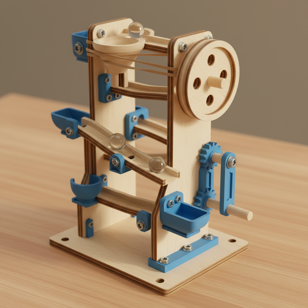 Construct an exciting marble run with multiple levels, curved tracks, and a spiral finale. Watch marbles race down ramps, around corners, and through a corkscrew spiral before landing in the collection cup.